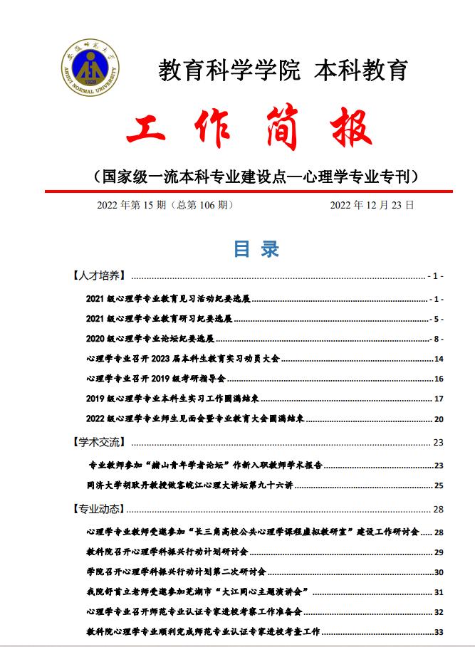 教育科学学院本科教育工作简报(第106期)心理学专业专刊
