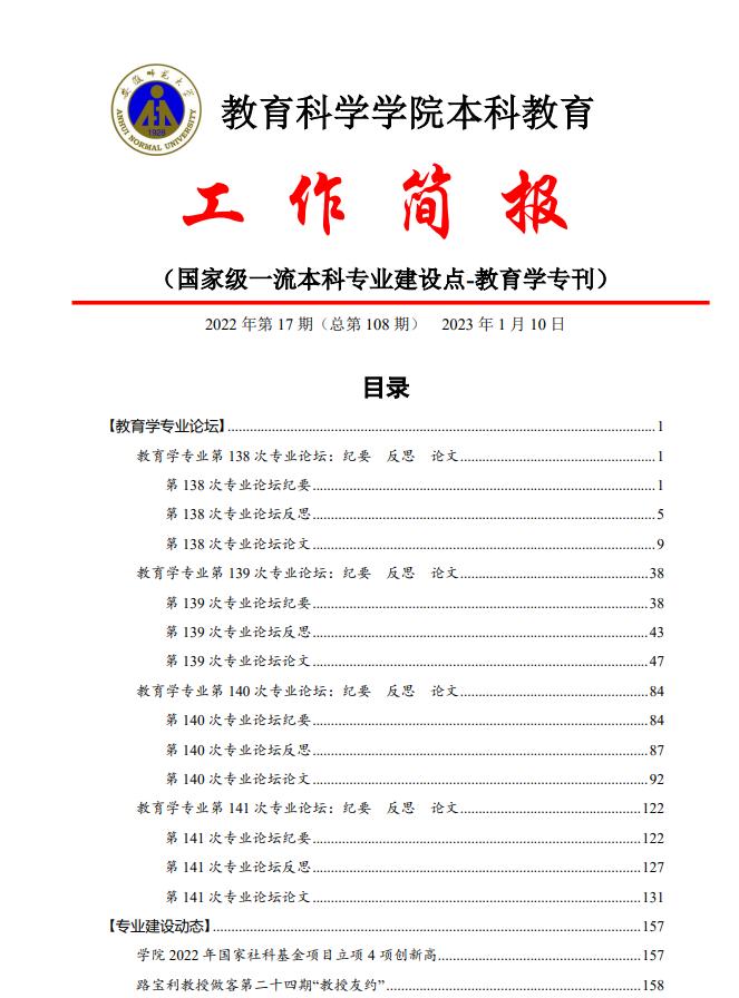 教育科学学院本科教育工作简报(第108期)教育学专业专刊