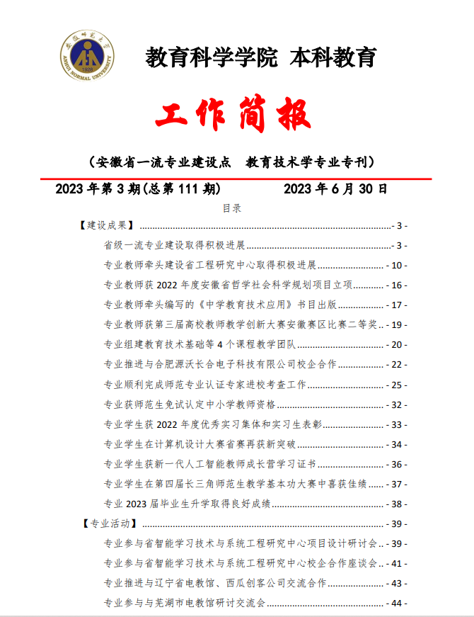 教育科学学院本科教育工作简报(第111期)教育技术学专业专刊