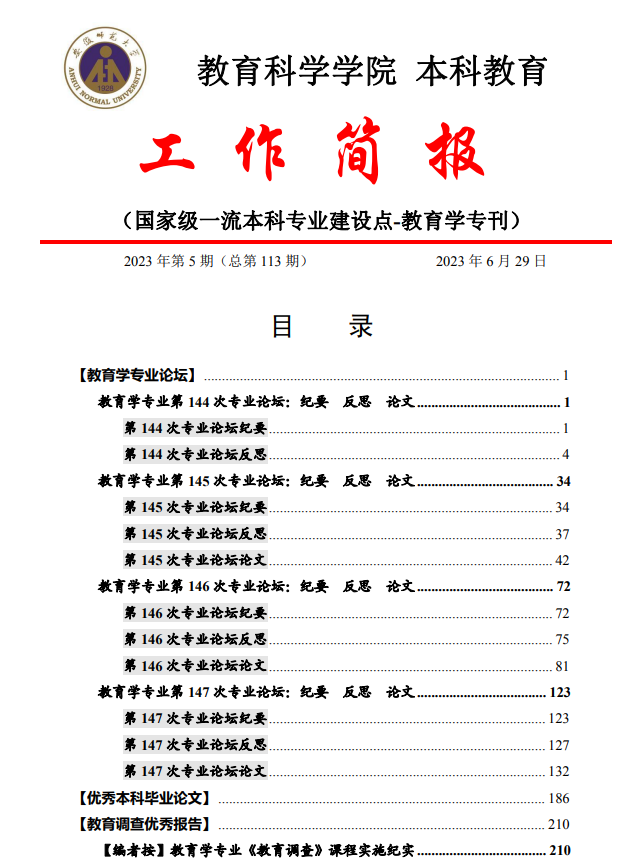 教育科学学院本科教育工作简报(第113期)教育学专业专刊