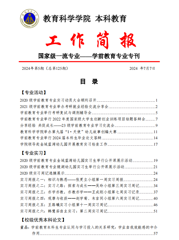 教育科学学院本科教育工作简报(第125期)学前教育专业专刊