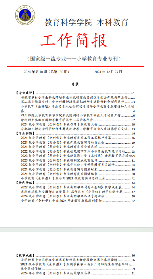教育科学学院本科教育工作简报(第130期)小学教育专业专刊