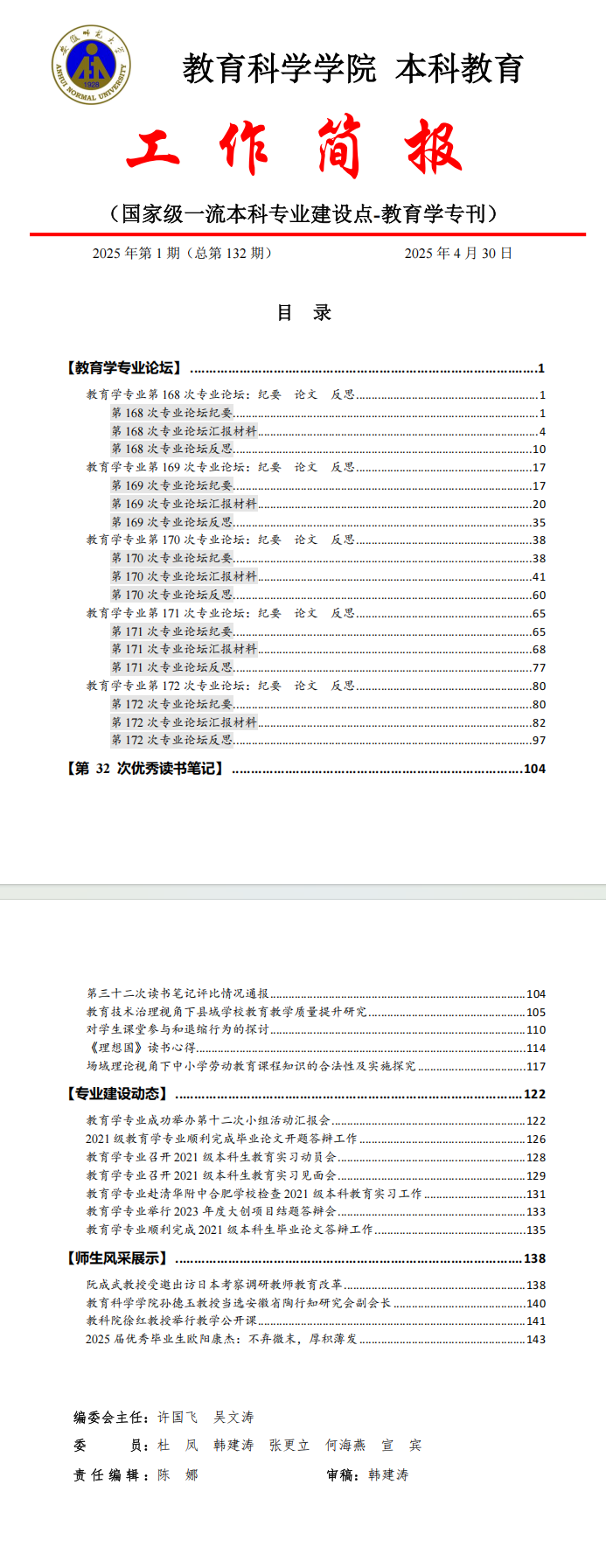 教育科学学院本科教育工作简报(第132期)教育学专业专刊