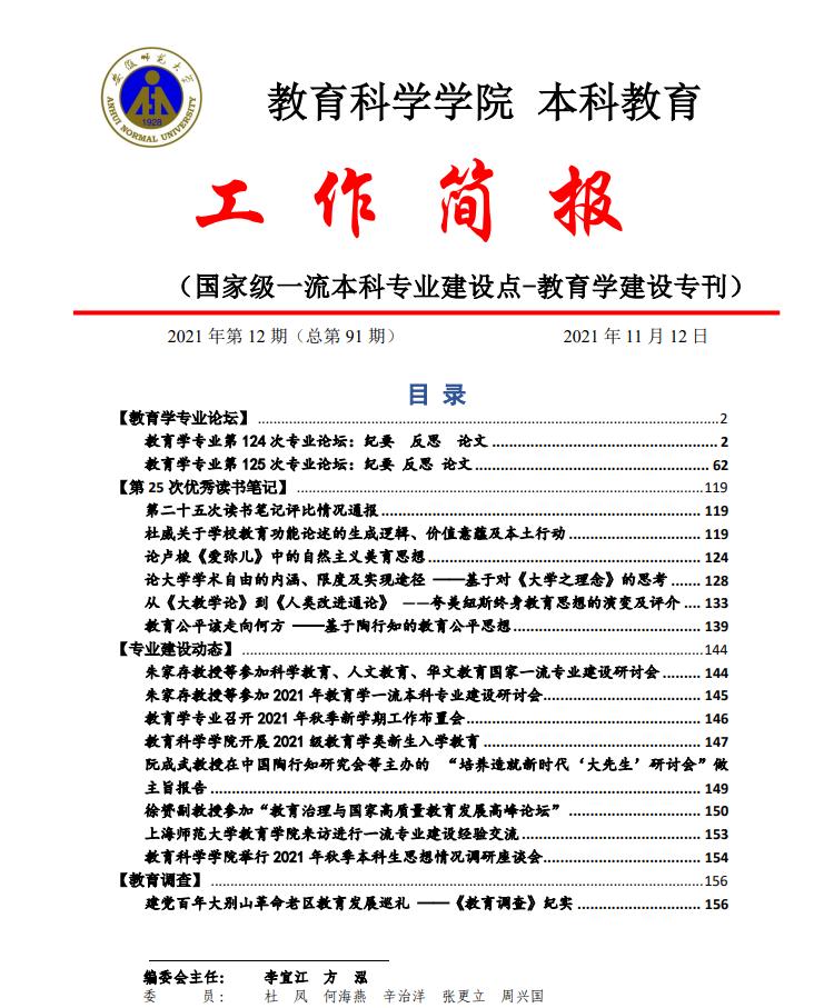 教育科学学院本科教育工作简报(第91期)教育学专业专刊