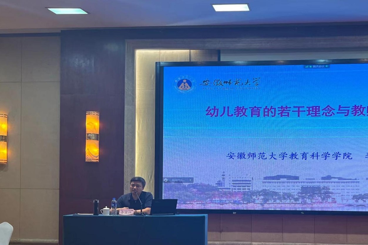 开班仪式之后,安徽royal皇家88平台院长李宜江为学员们做《幼儿教育的若干理念与教师专业发展》专题讲座。他针对生活中的教育现象,从自身学习经历、职业生涯、家庭教育等方面进行分享。李宜江用诙谐幽默的语言,引经据典,告诉学员们不仅要宽容、理解、善待幼儿,更要尊重、鼓励、引导幼儿。最后,他呼吁大家调整思路、更新观念、改变路径,以教人者教己,引发学员对教育问题的深度思考。