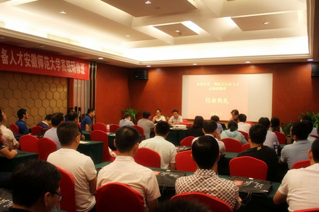 卞纲要主任代表安徽师范大学教育科学学院,向即将踏上回归旅程的全体学员们致以热烈的祝贺和美好的祝福。他在讲话中充分肯定了全体学员严于律己、尊重合作的团队精神,以及刻苦钻研、锐意进取的学习氛围,并希望大家能把在这次研修中所学的知识和掌握的技能,很好地应用到今后的工作之中;把好的学习作风带回到工作、生活中去,充分发挥各自的影响力和感召力,在单位营造良好的学习风气和氛围。