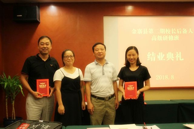 余晓萍主任代表金寨县教育局在讲话中谈到三点“感谢”,一是感谢安徽师范大学教育科学学院的鼎力支持,二是感谢研修班班主任姚运标老师的辛苦付出,三是感谢全体学员严格自律,圆满完成了学习任务,随后宣读了结业学员名单。结业典礼上,与会领导为学员们颁发了结业证书。