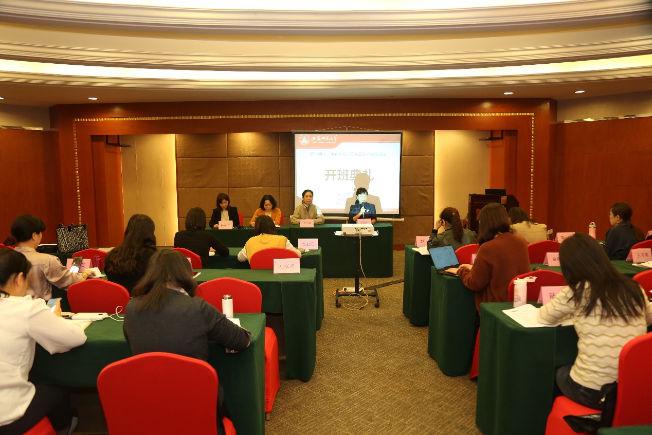 开班典礼由本次培训班班主任陈海燕老师主持。何海燕首先致辞,代表学院对各位学员的到来表示欢迎,简要介绍了安徽师范大学和教育科学学院的办学优势与特色,并对学员们提出学习上的三点要求:一要明确目标,沉下心来珍惜学习机会;二要加强学习,更多地拓展专业知识、完善能力结构;三要拥有情怀,更好地肩负历史使命、增强责任担当。随后余捷老师解读了培训项目的设计思路与课程方案。最后安徽省六安市金马幼儿园红鸣园长代表学员,作了题为《放飞心灵 砥砺前行》的发言,红鸣园长表示会在专家团队的引领下,学思结合、知行统一,与智者同行,与同行对话,从行动上、心理上快速适应紧张有序的学习,自觉遵守规章制度,携手并肩、且行且思,不忘初心,以全新的姿态迎接未来的机遇和挑战!
