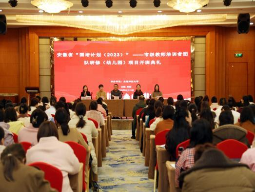 兮兮露华浓 ,芸芸宾客至,何处研歌起? 冬日暖阳里。2023年12月11日, 由安徽师范大学承办的安徽省“ 国培计划(2023)”市级教师培训者团队研修项目开班典礼在芜湖市北尚升辉财富大酒店举行。来自安徽省安庆市、蚌埠市、合肥市、马鞍山等14个地级市二百名幼儿园园长、骨干教师、幼教教研员参加此次培训。安徽royal皇家88平台副院长何海燕、安徽royal皇家88平台副院长、博士生导师、项目首席专家张更立教授及培训班的班主任老师出席了开班典礼。开班典礼由班主任陈海燕老师主持。
