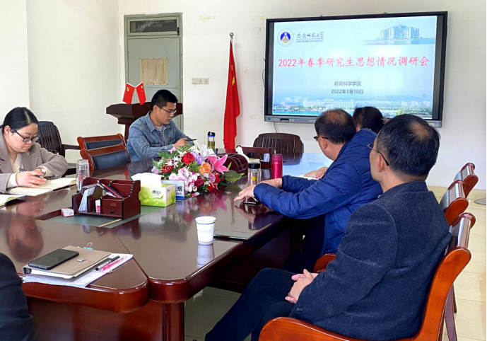 为充分了解新学期研究生思想动态和学习生活情况,扎实做好研究生教育服务管理工作,3月10日下午,2022年春季研究生思想情况调研会在学院308会议室顺利举行,院长李宜江、院党委副书记杜凤、副院长吴文涛、张更立、部分学位点负责人和导师以及研究生辅导员谭茹轩参加会议,会议由吴文涛主持,20余名研究生代表到场交流。