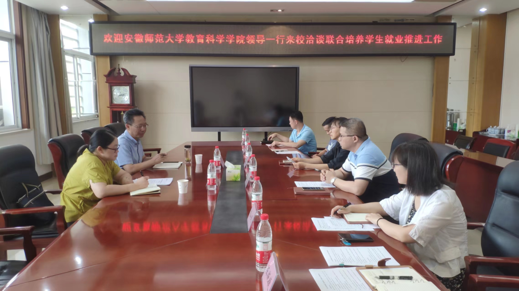 6月9日下午,教育科学学院党委书记方泓、党委副书记杜凤赴马鞍山师范高等专科学校推进联合培养毕业生就业工作。马鞍山师范高等专科学校校长刘淑凤主持就业推进洽谈会,党委委员、教师教育系主任栗亮、学生处副处长、就业指导中心主任晋愈飞、教务处副处长、本科工作部书记潘庆云、教师教育系副主任陈小凤,毕业班辅导员陈婉婕参会。