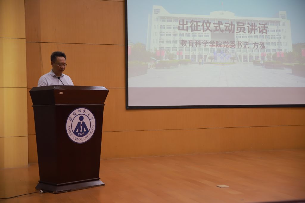 6月23日晚,教育科学学院于赭山校区田楼报告厅举办2022年大学生暑期“三下乡”社会实践活动出征仪式。参加本次活动的有校团委副书记廖仲明,院党委书记方泓,副书记杜凤,副院长张更立,暑期社会实践思政课指导老师马克思主义学院龚伟,指导教师代表,学院全体辅导员以及2022年暑期社会实践团队队员代表,院团委副书记蔡文主持本次活动。