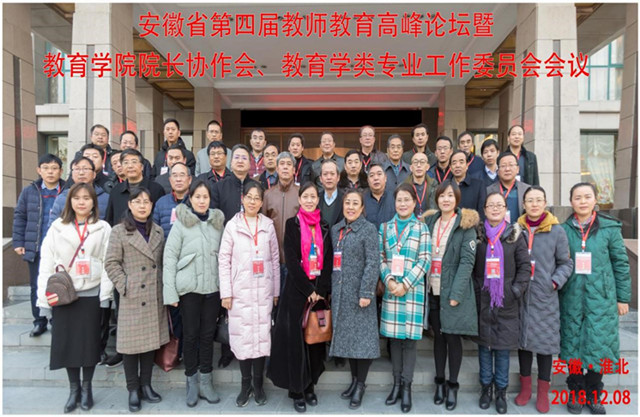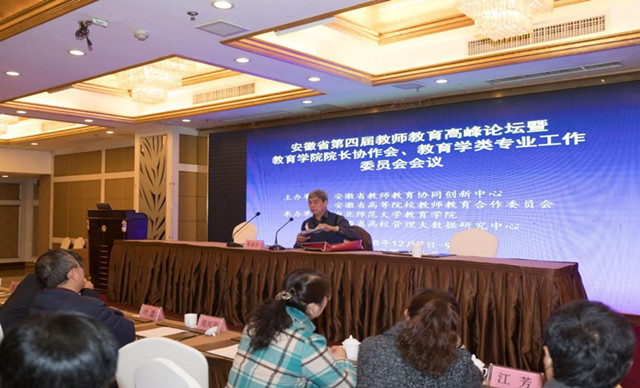 本网讯(教科院)2018年12月8日,安徽省第四届教师教育高峰论坛暨教育学院院长协作会在淮北师范大学成功举办。会议由安徽省教师教育协同创新中心主办,淮北师范大学教育学院、安徽省高校管理数据研究中心承办。来自安徽师范大学、淮北师范大学、安庆师范大学、阜阳师范学院等省内16所高校的三十余位代表参加。我校教育学一级学科负责人朱家存教授、教育科学学院院长桑青松教授、教师教育协同创新中心执行主任阮成武教授、副主任周兴国教授、教育科学学院副院长辛治洋教授、李宜江教授等参加了此次会议。