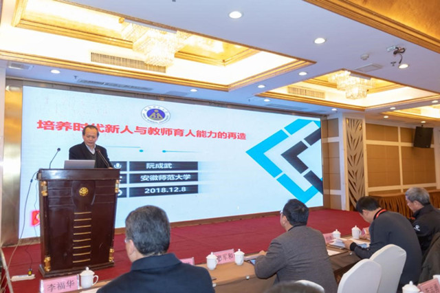 阮成武教授围绕“塑造时代新人与教师育人能力的再造及提升”从新中国70年培养新人的目标共性与时代特质,分析培养时代新人对教师育人能力提出的新要求,提出了新时代教师育人能力再造的框架与路径。