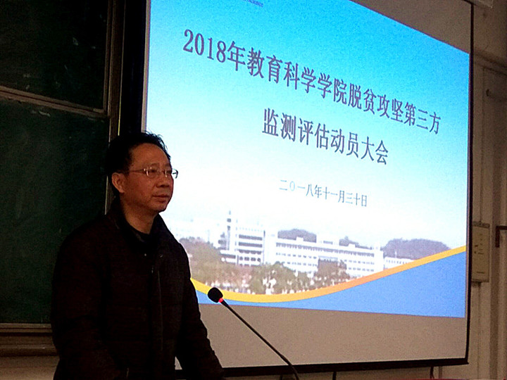 本网讯 (教科院 /刘洪钰图/叶方舟)为顺利开展安徽省脱贫攻坚第三方测评工作,我院于1130日下午在田楼8102教室召开2018年安徽省脱贫攻坚第三方监测评估动员大会,院研究生教务员叶方舟、2017级研究生辅导员王礼军以及103名研究生与会,学院党委书记方泓作动员讲话。