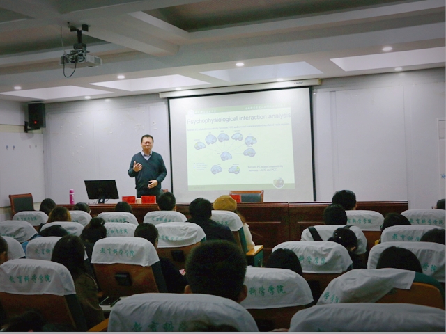 本网讯(教科院 文/刘媛媛 图/丁梦婷)122日下午,在我院三楼学术交流中心,中国科技大学教授、博士生导师张效初教授为我院师生作“皖江心理大讲坛”第六十七讲报告。报告主题为:“The neural basis of prediction error representation and learning during decision making and influenced by nicotine addiction ”,宣宾教授担任主持,我院桑青松院长出席本次报告会,心理学方向研究生到场聆听。