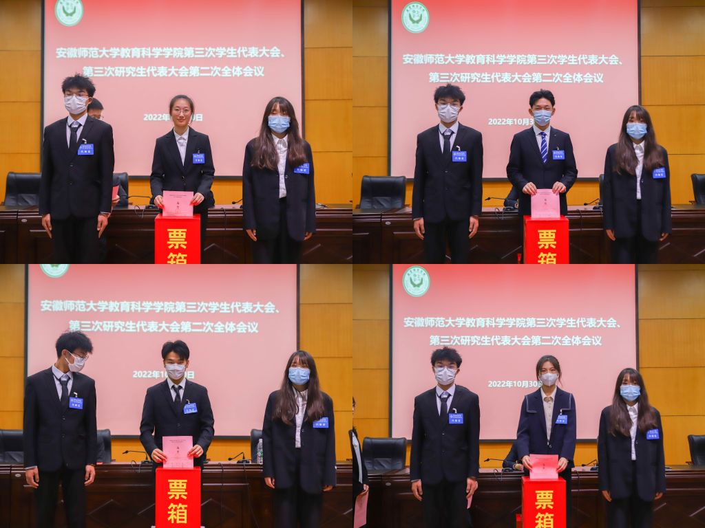 2022年10月30日晚,教育科学学院于赭山校区田楼报告厅召开教育科学学院第三次学生代表大会、第三次研究生代表大会(以下简称学代会、研代会)。会议听取并审议了第二届学生会、研究生会工作报告,选举产生教科院参加校第十五次学代会、第四次研代会代表,以及教科院第三届学生会主席团、学生委员会委员和第三届研究生会主席团、研究生委员会委员。学院共有35名本科生代表、10名研究生会代表参会。院党委书记方泓、副书记杜凤,院团委书记张理强、副书记付银行,以及研究生辅导员程啸出席本次会议。
