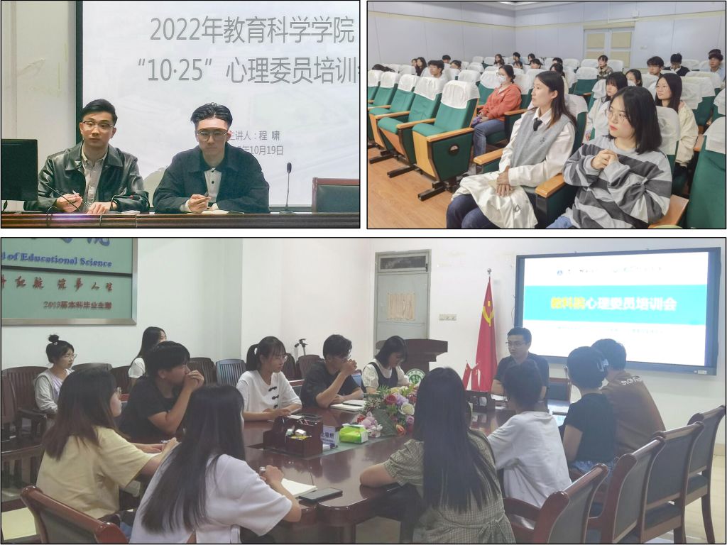 用心守护教科学子心理健康,学院大学生发展辅导站于10月19日下午召开心理委员培训会。会上,大学生发展辅导站负责人程啸明确了各心理健康委员任务,规划了工作安排,助力学院“10?25”心理健康活动顺利开展。学院新任辅导员付银行结合自身心理学学科背景,面相全员心理委员开展了《心理问题的分类与鉴别》培训。此次会议不仅促进心理委员的能力提升,还加强了自身素养。