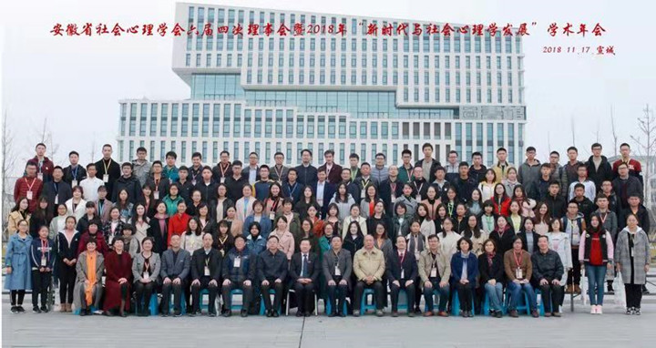 袁芳琦)2018年11月17日安徽社会心理学会六届四次理事会暨2018年“新时代与社会心理学发展”学术年会在合肥工业大学宣城校区召开,合肥工业大学副校长陈鸿海、宣城市委宣传部常务副部长郑华、铜陵学院副校长夏美武、安徽社会心理学大会会长范和生教授以及学会理事、会员300余人参加本次学术会议,我院心理学专业王道阳副教授携5名研究生参加了此次会议。