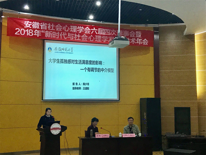 2016级应用心理学研究生陈少月还在青年论坛上做了《大学生孤独感与生活满意度的关系:有调节的中介模型》的学术报告,得到了与会专家的好评和认可。