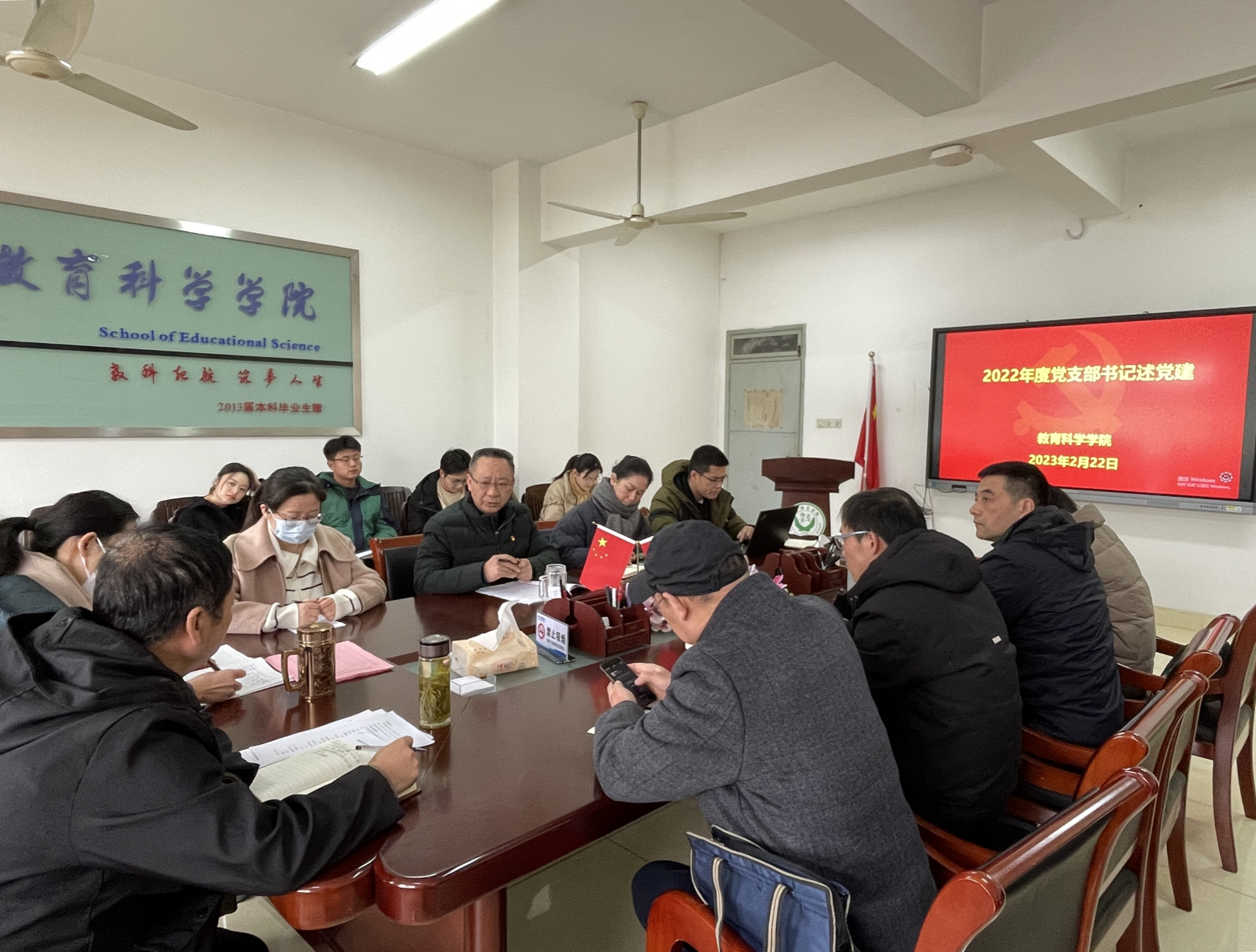 本网讯(袁黎平 于玮潇/文 段陈影/图)2月22日下午,教育科学学院召开2022年度党支部书记述党建专题会议,学习贯彻党的二十大精神,落实党的建设总要求。会议由学院党委书记方泓主持,学院党委委员、各党支部全体委员和各专业负责人参加会议。