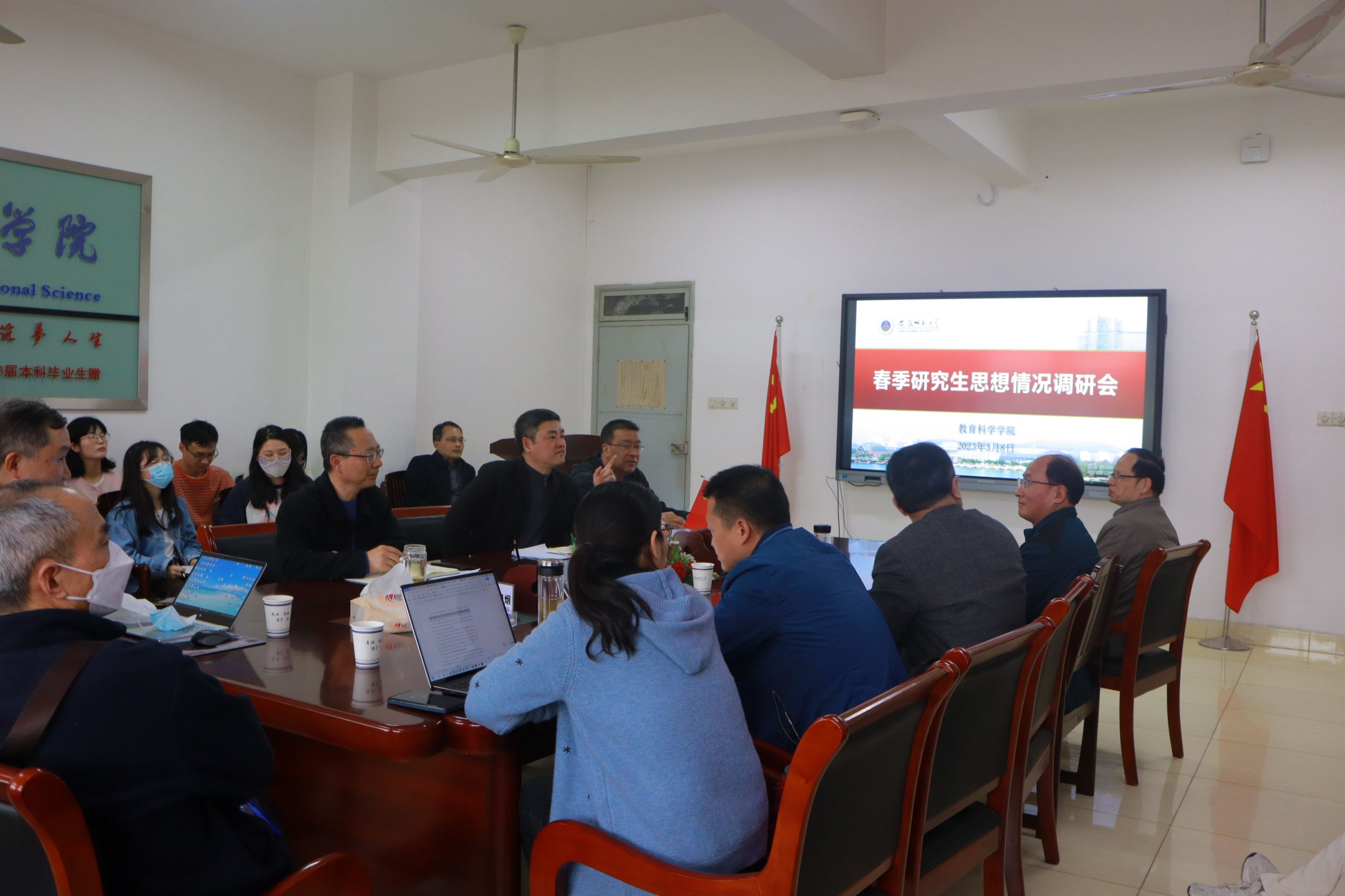为及时了解学生新学期思想动态及学习生活情况,扎实推进研究生日常教育、管理与服务工作,3月8日下午,教育科学学院于B座308会议室召开2023年春季研究生思想调研座谈会,院党委书记方泓、院长李宜江、各学位点负责人、研究生管理秘书谭茹轩、辅导员施羽晗以及20余位研究生代表参会,调研会由谭茹轩主持。