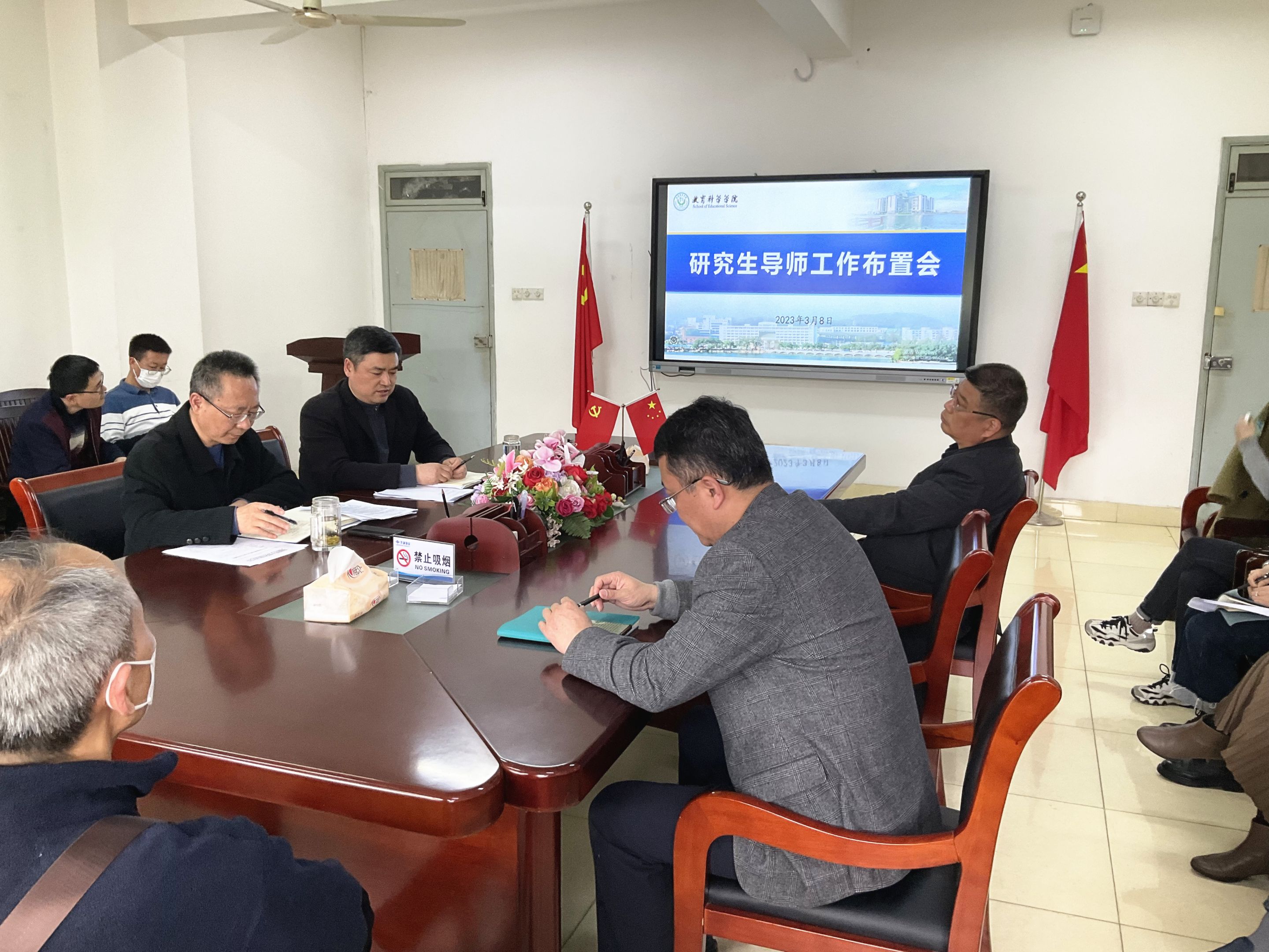 为全面提高研究生培养质量,规范研究生培养全过程,2023年3月8日下午,我院在308会议室召开了研究生导师工作布置会。学院党委书记方泓、院长李宜江和全体研究生导师参加,会议由李宜江主持。