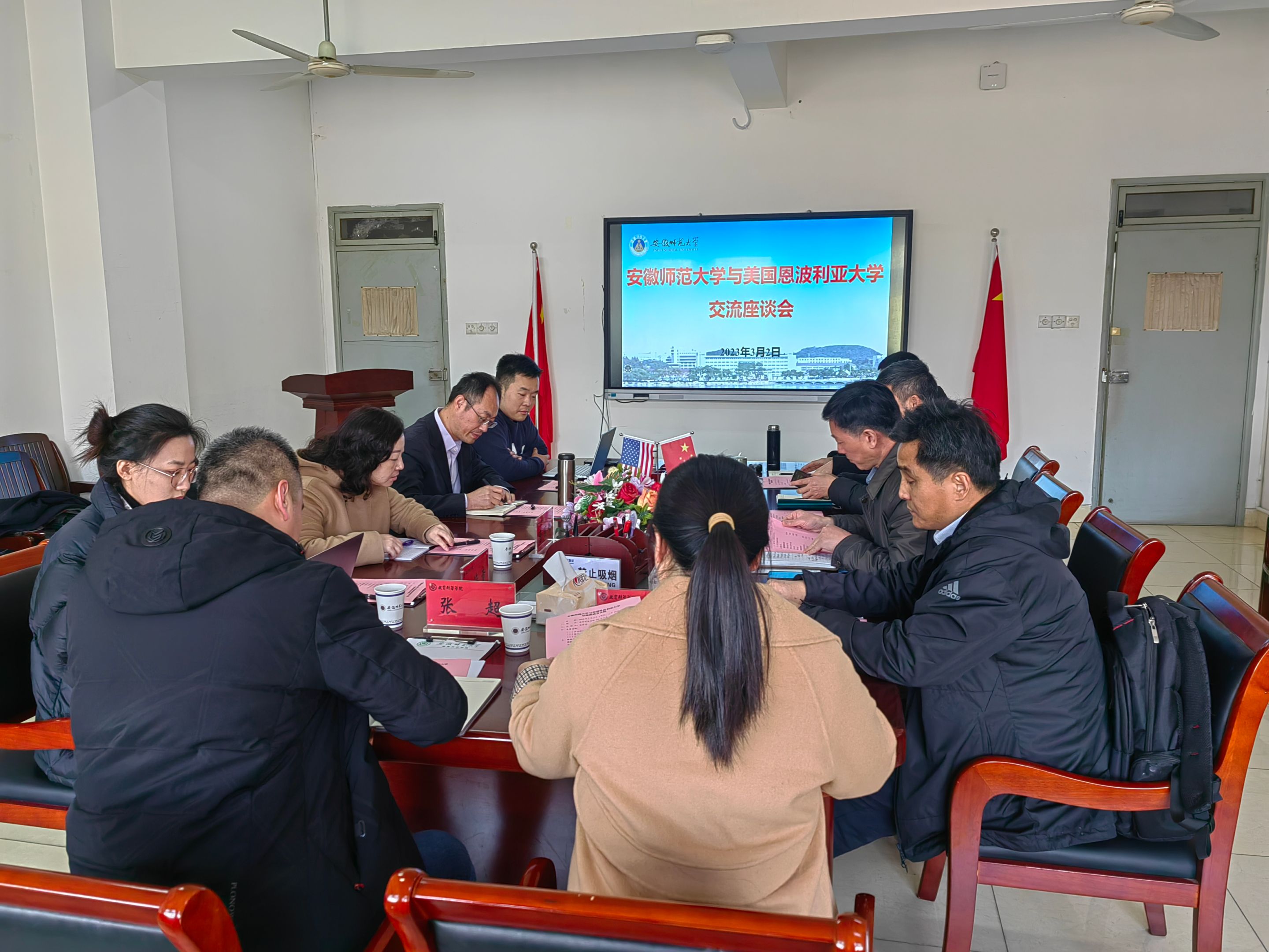 本网讯(教科院)3月2日上午,我校与美国恩波利亚州立大学代表线下交流座谈会在教科院308会议举行,双方就两校合作办学工作推进进行磋商。教育科学学院院长李宜江、副院长韩建涛、体育学院副院长高升、美国恩波利亚州立大学中国办公室代表唐丽峰、总监于春海等相关人员参加了本次会议。会议由我校国际交流合作处处长张德让主持。