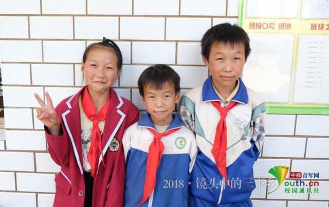 学生小陈与他妹妹和弟弟的课间合影。中国青年网通讯员 房聪 摄