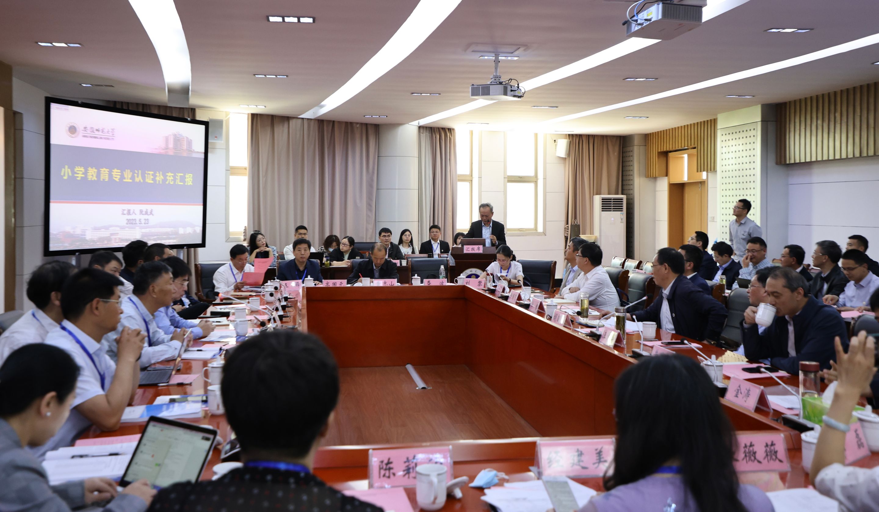 2023年5月23-25日,小学教育专业认证正式进入专家进校考查阶段。小学教育专业第二级认证进行现场考查的专家组由天津师范大学杨宝忠教授、大连大学陈莉欣教授、黄冈师范学院项俊教授、楚雄师范学院施红星教授、绍兴市上虞区实验小学教育集团校长经建美、曲靖师范学院刘黎老师组成。