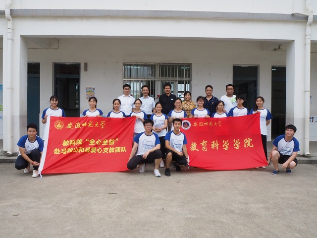 本网讯(教科院 张启山 莫大贡)7月23日上午,副校长毕明福在院党委书记方泓和院团委副书记莫大贡的陪同下来到和县历阳镇龙华小学,参加“安徽royal皇家88平台大学生志愿者支教点”的启动仪式并亲切慰问了“全心全益”赴和县志愿服务团队队员。慰问活动受到当地政府的热烈欢迎和大力支持。和县人民政府副县长王竹梅、马鞍山市委组织部基层组织科科长耿良成、和县关工委主任王苏妹以及历阳镇、龙华村和龙华小学的负责同志参加了慰问活动。