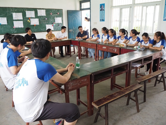 启动仪式后,毕校长一行与志愿者们开展座谈交流。志愿者们畅谈自己这些天的志愿服务的体验和收获。其中,2017级祁欣同学认为有“三爱”贯穿支教的始终。一是爱教师,只有对教师这个职业保持热爱才能诲人不倦;二是爱学生,每一个学生都是一颗颗星星等待我们去点亮;三是要爱自己,要让自己成为一个阳光、温暖、充满正能量的人。方泓书记代表学院说到:“支教队伍在传播真善美的同时也在成长,你们是走在两个一百年关键时期的大学生,暑期社会实践为你们提供了道路和经验,助力你们成为祖国未来发展的重要青年力量。”毕校长对暑期社会实践的本质进行了概括,“合作学习、朋辈教育的载体;锻炼品行,展现才华的舞台;了解国情,把握世情的渠道;启迪人生,开阔视野的窗口;宣传学校,维护形象的名片。”