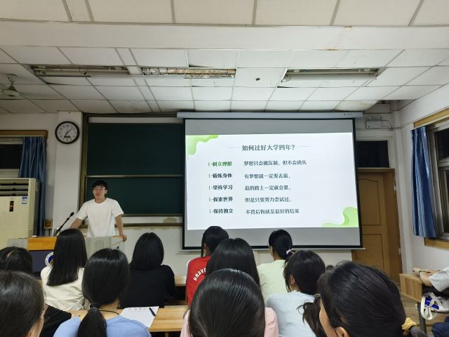 本网讯(教科院 刘玉瑾)2023年9月2日,教育科学学院积极贯彻学校迎新工作要求,2023级辅导员金凤仙、兼职辅导员刘玉瑾分别在安徽师范大学天门山校区主教学楼205教室与实验楼501教室,召开了教育科学学院2023级本科生第一次班会。