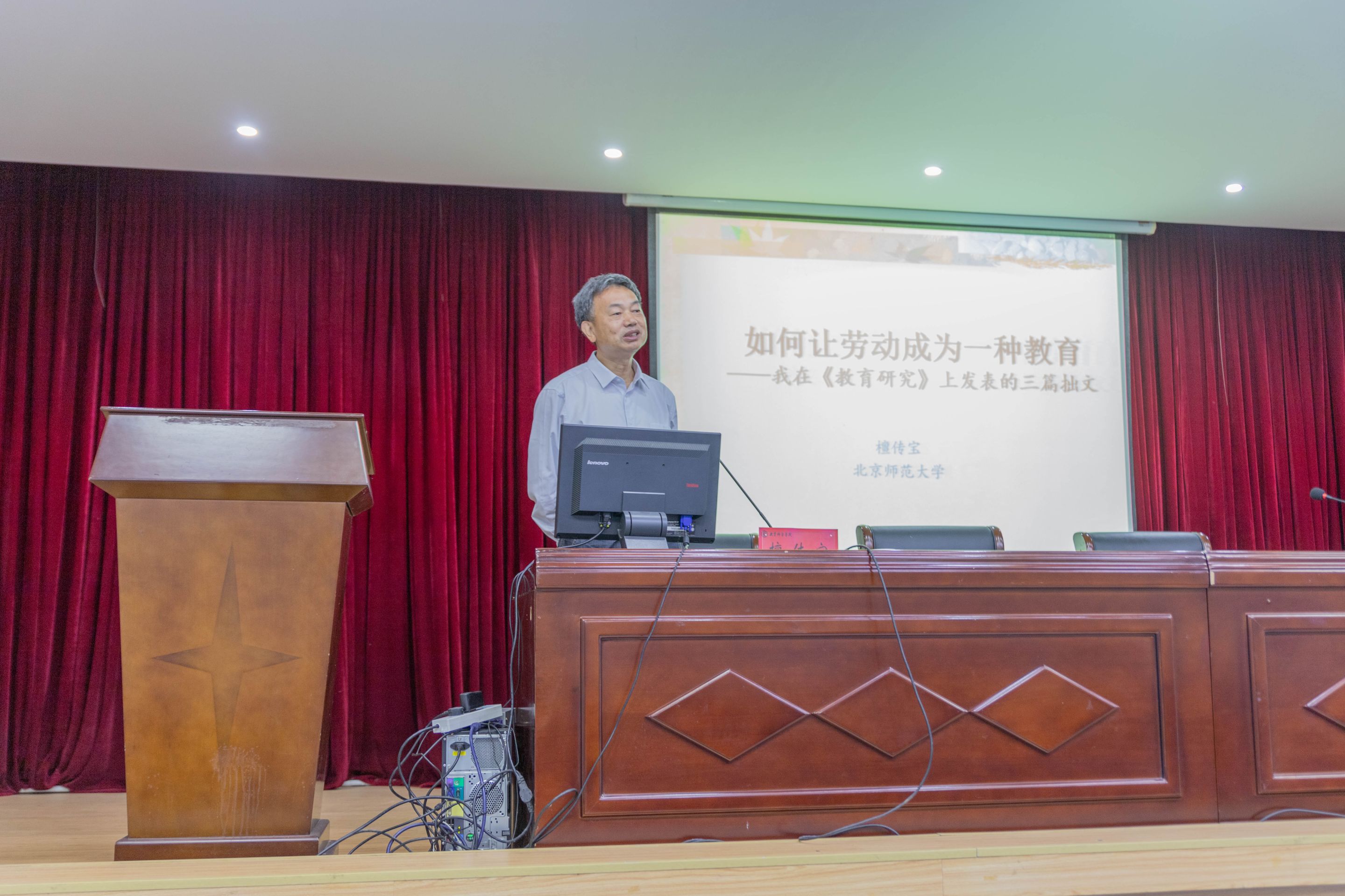 (文/张乃迎 图/张乃迎)9月9日下午,北京师范大学檀传宝教授受邀为我院师生作主题为《如何让劳动成为一种教育》的讲座。讲座由辛治洋教授主持,学院部分青年教师、教育学方向博士与硕士研究生100余人到场学习。