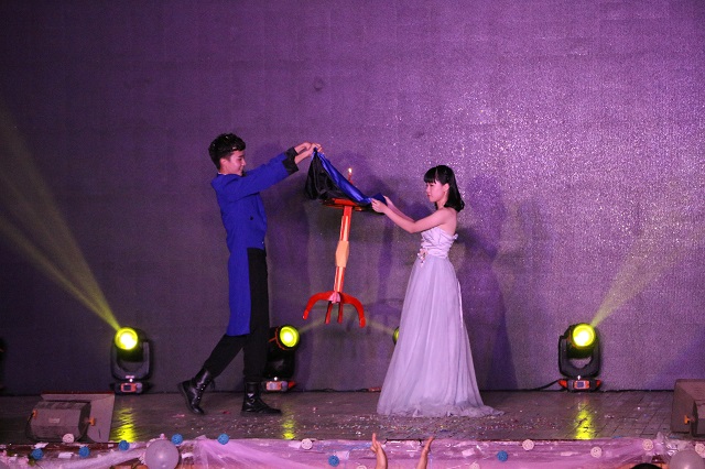 青春记忆或许就是这样,有欢笑,有感动,更有数不完的热情洋溢。热血,是我们的代名词;舞蹈,是我们活力的展现。爵士舞串烧《Find my girl》又瞬间点燃全场。《玫瑰与枪》,力与美的激烈碰撞,弱与强的完美融合,夺人眼球,展现当代大学生对待青春的专属态度。藏族舞《天浴》,悠扬缥缈的歌声,灵动起舞的佳人,仿佛把我们带入了不染俗尘的世界。青春又像一场魔术,有着巨大的魔法,往我们流连忘返。魔术表演《伞魂》使大家沉浸在魔术的神奇中。
