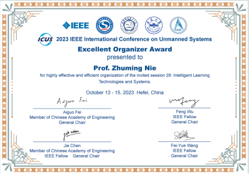 我校三个工程研究中心(实验室)在本次国际会议联合开办了“智能学习技术与系统”“多智能体系统的协调控制及主动抗干扰技术”两个专题论坛。安徽省智能学习技术与系统工程中心主任聂竹明教授、安徽省智能机器人信息融合与控制工程实验室主任方明星教授、安徽省医疗大数据智能系统工程研究中心主任陈付龙教授分别担任专题论坛的主席或共同主席。方明星教授等合作论文获大会“最优论文奖”。聂竹明教授受邀担任大会出版委员会共同主席并获大会“最佳组织奖”。我校博生生张迪、硕士生施文静、钱浩正、汤广李等论文入选会议,并在大会专题论坛做报告交流。