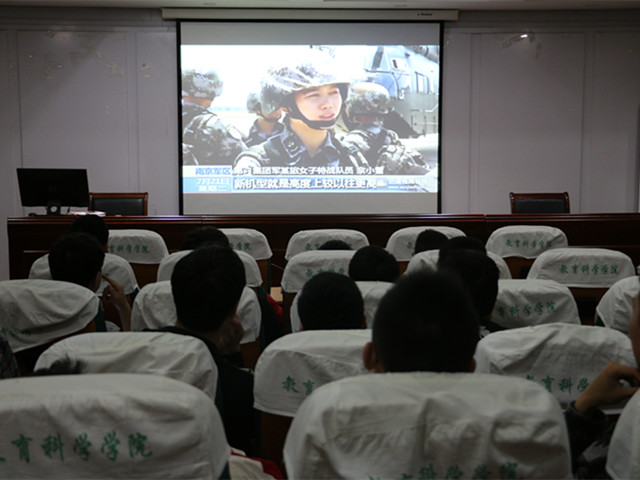 会议伊始,院党委副书记张如华老师首先就我院历年参军情况和今年入伍相关政策做了简要说明,强调适龄男青年进行兵役登记是每个公民应尽的义务,提倡在座同学积极响应国家号召,洒一腔热血为国家贡献自己的力量。紧接着,同学们集体观看了大学生征兵入伍的宣传视频,视频展现了国家军事力量的日益强大,宣传了参军入伍的光荣性和使命感。我校入伍优秀大学生代表佘小雪在特种部队的经历和事迹被央视报道的视频更是让在场同学热血沸腾,鼓励着热血男儿趁着年轻投身军营,体验不一样的生活,丰富人生经历。