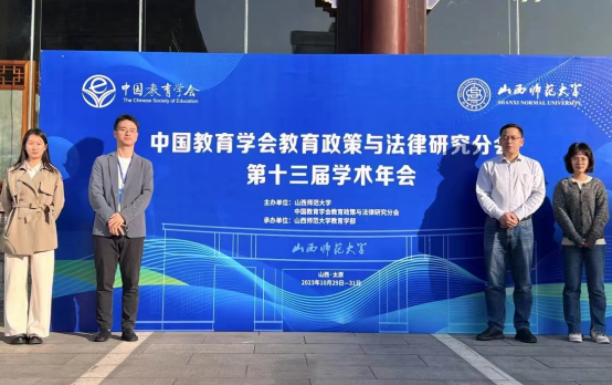 2023年10月29日至31日,由山西师范大学和中国教育学会教育政策与法律研究分会主办、山西师范大学教育学部承办的中国教育学会教育政策与法律研究分会第十三届学术年会在太原召开。我院徐赟老师、陈元龙老师及研究生俞晓雨、邹楠参加了会议。中国教育学会教育政策与法律研究分会是我国教育政策与法律研究的学术性组织,主要面向高等院校师生、科研机构和教研部门的研究人员以及中小学教师、管理者,旨在推进最新教育政策与法律研究成果,打造教育政策与法律研究的平台。本届年会主题为“中国教育治理现代化:政策与法律保障”,设主题报告、专题发言和教育法律制度确立与完善研究、现行教育法律法规修订研究、教育政策运行与教育政策变革研究、教育政策与教育法律热点问题研究4个平行分论坛及3个研究生论坛。中国教育学会副会长孟繁华,中国教育政策评估与研究中心主任、中国教育学会教育政策与法律研究分会理事长劳凯声,中国教育科学研究院副院长马陆亭,中国教育学会教育政策与法律研究分会秘书长余雅风等出席了会议。共有来自全国100余所高校和科研院所、近400名专家学者参加了会议。