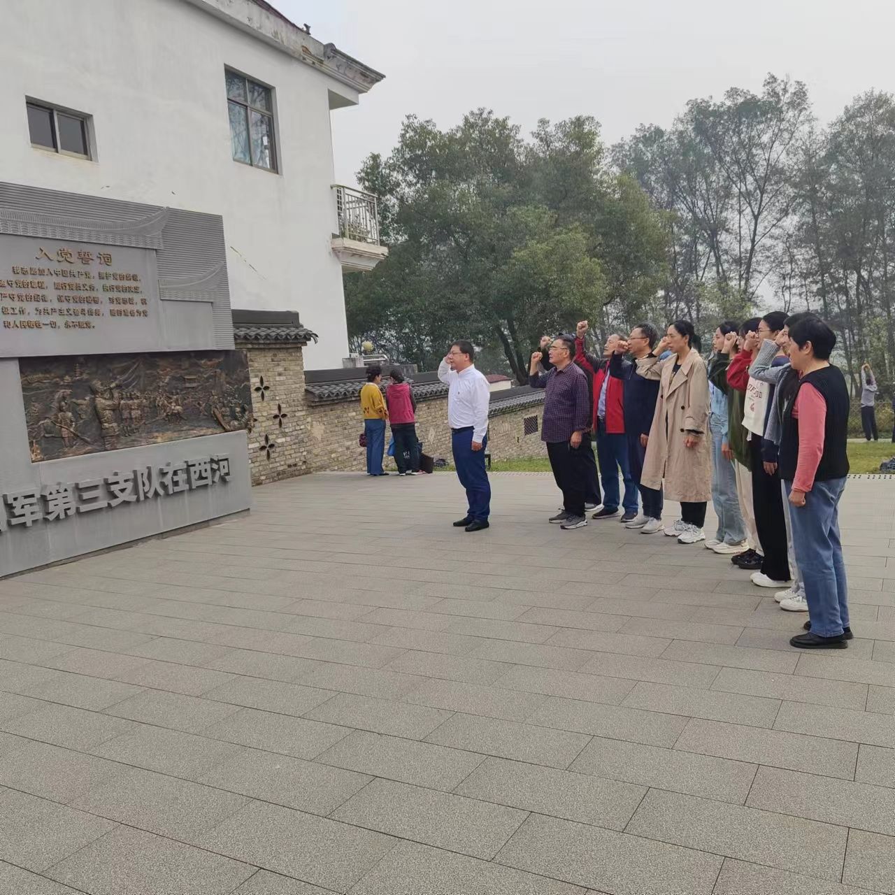 参观纪念馆的史料之后,党员们举行了重温入党誓词活动。活动结束后,退休老教师与学生党员们进行交谈,了解学习生活情况。