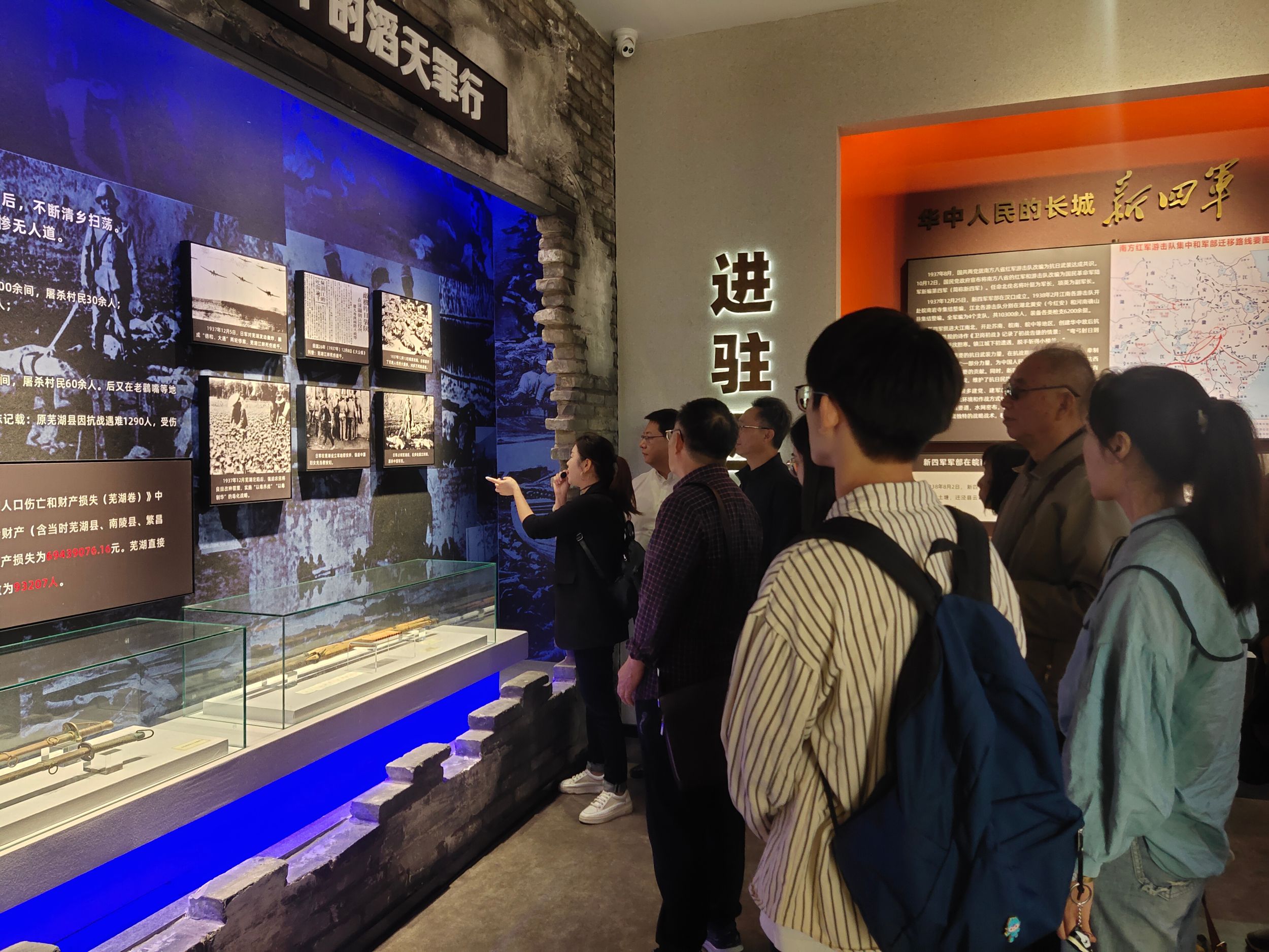 到达西河古镇后,大家首先参观了新四军第三支队在西河纪念馆。纪念馆以新四军第三支队在西河的抗日活动为主线,主要呈现新四军及三支队的历史沿革,展示了当年第三支队在芜湖取得的四场重大胜利——红杨树战斗、马家园战斗、智取芳山、湾沚战斗,及其在西河的民运工作和抗战时期西河党支部建设等情况。在讲解员的详细介绍下,结合翔实的图文资料和影像资料,大家深刻感受新四军第三支队在红杨西河保家卫国的抗日精神。