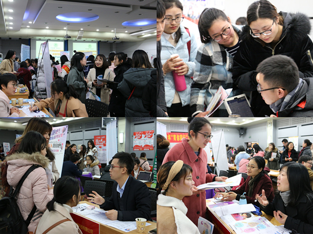 本网讯(教科院 龚伟)把握就业黄金期,服务学子好时机。为全力做好2018届毕业生就业工作,搭建毕业生与用人单位交流“直通车”,12月27日下午教科院举行了学院第四届“育你同行”校园冬季专场招聘会。上海崇明区教育局、苏州尔家幼教集团、南京武家嘴实验学校、北京华图教育科技有限公司、中公教育、国家彩虹工程阜阳技师学院、安师大幼教集团等来自省内外的45家用人单位共提供就业岗位近500个,吸引了300多名毕业生前来求职应聘。