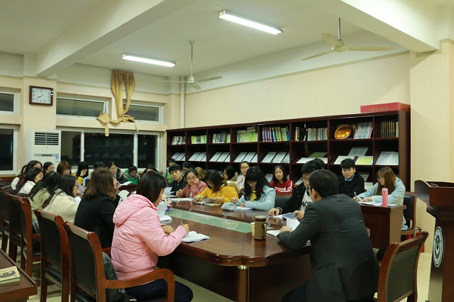 活动开始前,主持人分发了由我院党委编印的《习近平总书记关于教育工作系列重要讲话摘录读本》。与会同学认真阅读《读本》,就其中的教育观点谈了自己的看法。学生会主席张照辉说,“习近平总书记关于青年教育的论述,让我们当代青年深受鼓舞。我们只有把人生理想融入到国家和民族的事业中,才能最终成就一番事业。”2017级小学教育的夏亚南同学对习近平总书记关于农村教育和教师教育的论述深有感触,“教育是阻断贫困代际传递的重要途径,教师队伍素质能力不断提高,是实现教育扶贫的基础。”