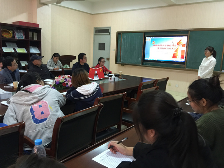 本网讯(教科院 马兴 张皓南 )做好大学生党员发展工作有利于提高学生党员队伍整体素质,教科院数年来坚持将大学生入党答辩作为入党前的重要一课,加强对发展对象的党性修养考察。10月19日中午,学院按支部分别举行了2017年下半年研究生、本科生党员发展答辩大会。学院党委书记刘晓宇、党委副书记张如华、科研副院长聂竹明、院关工委常务副主任王在广及学生党支部书记共同组成答辩委员会对答辩者进行现场考察,支部全体学生党员、入党积极分子及部分普通同学参与了现场评议工作。