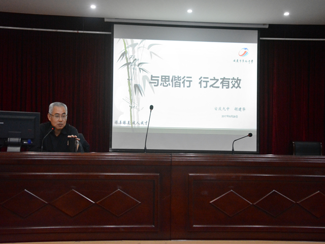 本网讯(教科院 尚娟 龚伟) 教学实习是学生对所学知识进行检验,并积累初步工作经验的重要学习环节。为保证2018届本科生实习工作的顺利展开, 9月29日下午3时,教科院在图书馆一楼报告厅召开了“教科院2018届本科生教育实习动员暨辅导报告会”,特邀请安庆六中胡建华校长做主题报告, 2014级辅导员龚伟、全体毕业班学生参与了此次会议。活动由院长助理,教育学专业副教授周元宽主持。