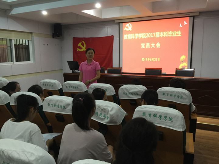 本网讯(教科院 侯晓丽)凤凰花开,骊歌轻吟,又到一年毕业季,教科学子学有所成,即将扬帆起航。为使全体党员在大学本科的最后时间里继续履行职责,做好毕业生文明离校工作,6月21日上午教育科学学院在三楼学术报告厅举行全体毕业生党员“坚守初心,继续前进”的专题教育大会。学院党委副书记张如华以及2013级党员参加此次会议。