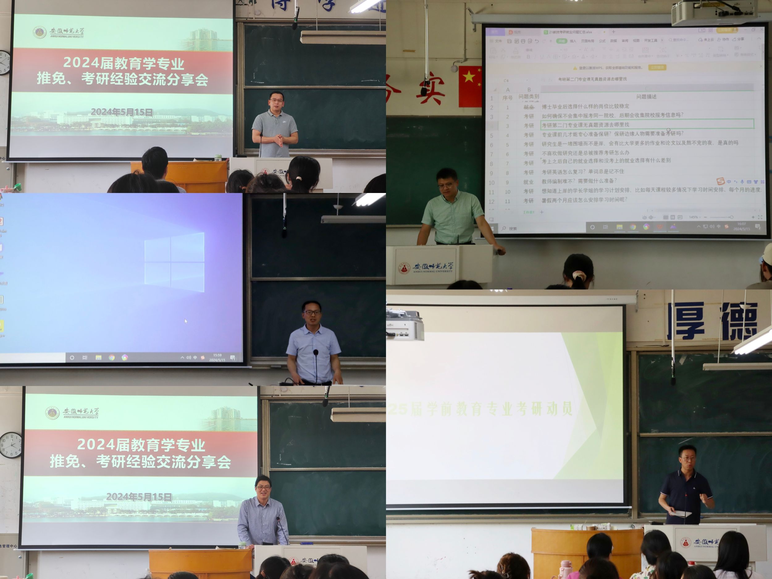 为进一步引导学生合理规划职业发展道路,提高考研及就业的竞争力,2024年5月15日下午,教育科学学院于科技礼堂及各专业分会场召开2025届本科毕业生就业暨考研动员会。院长李宜江、院党委副书记杜凤、副院长韩建涛、各专业负责人、全体本科生辅导员以及2025届全体本科生参加本次会议,会议由杜凤主持。