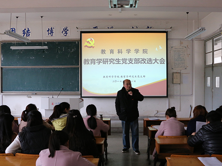 换届选举之前,各位委员详细地向与会党员介绍了《教育科学学院关于做好基层党支部委员会换届工作的通知》,并指出党支部换届改选是一项政策性、程序性很强的工作,必须充分发扬党内民主,尊重党员的民主权利,严格按照规定的程序和办法组织选举,确保换届选举工作的顺利进行。随后,各支部的现任书记认真地向支部成员进行了工作述职。最后,根据换届选举工作安排,学院四个在职教工党支部顺利完成换届工作,各自产生了新一届的支委成员。学院本科生党支部由原先以年级为单位统整为1个本科生支部;研究生支部打破原先以年级为单位的建立方式改为按专业来设置支部,以方便专业内党员力量的整合和联系。