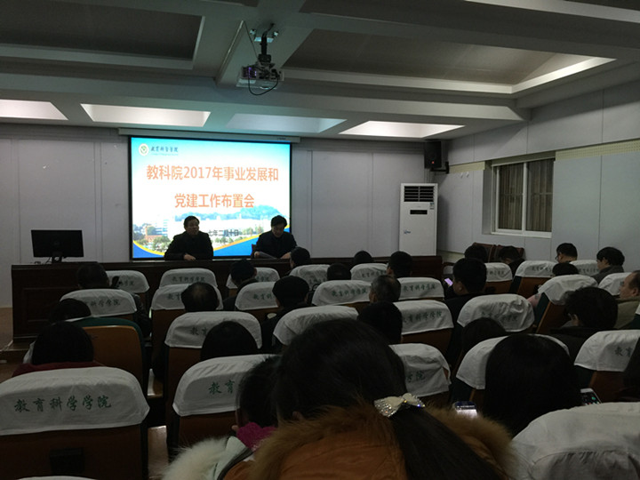刘晓宇对学院党建和思想政治工作作了全面布置,他指出,新的一年里要全面贯彻全国高校思想政治工作会议精神,继续坚持“围绕中心抓党建,抓好党建促发展”的工作理念。要加强学习,提高政治定力;明确责任,遵守政治纪律和政治规矩;注重结合,改变“两张皮”现象;强化制度,夯实基层组织。最后,他强调当前正值教育改革全面深化之机,唯有认清形势,明确目标,理清思路,把握重点,强化党建,凝心聚力才能稳中求进,实现内涵发展。他指出教科院要成为教师教育特色学院,一定要在抓突破、抓改革、抓氛围、抓落实上下功夫,砥砺奋进,补齐短板,提升质量。