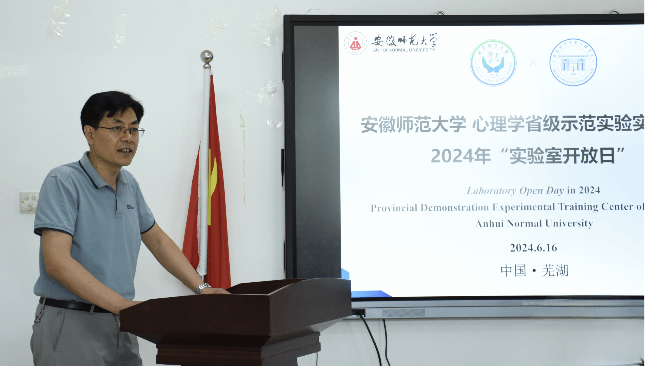 安徽师范大学心理学实验中心为安徽省省级实验实训中心(以下简称“中心”),在人才培养和学科发展上具有重要作用。为了更好地发挥中心的人才培养和科普教育作用,提升心理学专业的知晓度和认同度,2024年6月16日下午,教育科学学院心理学系举办首届心理学“实验室开放日”活动。活动由心理学系主任王礼军主持,校研究生院院长桑青松教授、教育科学学院副院长韩建涛教授、教育科学学院学术分委员会主任宣宾教授、心理学实验实训中心主任李小平教授以及各实验室负责老师共同指导。活动吸引了来自大中小学的师生、家长及社会组织的广泛关注与积极参与。