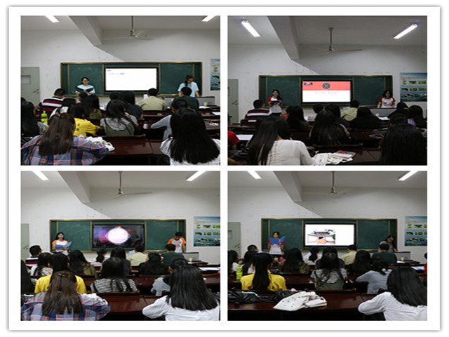 经过前期充分细致的总结和遴选工作,共有校、院、班16支队伍进入到了此次汇报。在5分钟时间里,各团队的负责人利用PPT对此活动的前期准备、中途开展、以及后期成果进行了叙述,图片及视频的运用不仅直观展示了实践状况,也为此次评比活动增添了生动性。